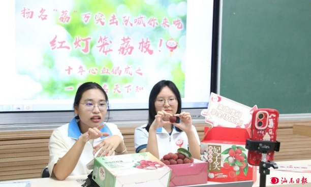 华南师范大学扬名“荔”万突击队为东涌镇宝楼村红灯笼荔枝直播带货。