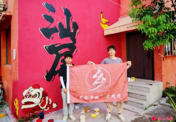 华南师范大学“笔绘乡貌”实践团在老旧小区打造新潮墙绘打卡点。