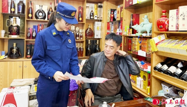 消防人员向商户普及消防安全常识。