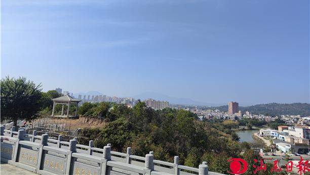 近日,记者登上福山妈祖大型雕像脚下,四顾回望,陆城的高楼大厦、东海溪、玉台山公园等尽收眼底。妈祖雕像总高度达29.5米,神情慈祥、大爱无疆。雕像四周三个平台形成“福山妈祖圣迹雕像群”,66幅“妈祖故事石雕” “九龙含珠” “ 彩凤飞舞”以及323幅书法石雕。建有一座约30平方米观赏亭。不少陆城市民闲时都选择来这里登高望远,开阔心胸。