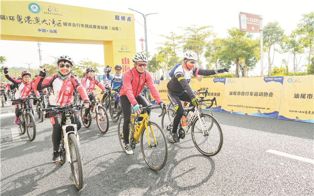 ▲我市通过举办各种大型赛事,让更多人关注汕尾、了解汕尾。图为2020(第三届)环粤港澳大湾区城市自行车挑战赛首站赛在汕尾市区举办现场。