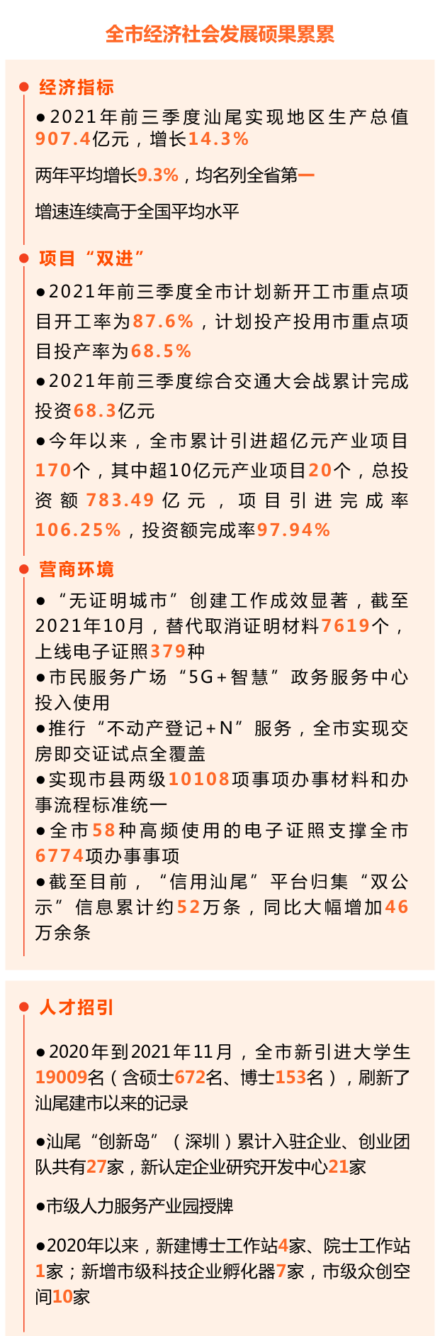 广汕铁路、汕汕铁路、兴汕高速二期工程、后湖海上风电、甲子海上风电、华南师范大学汕尾校区等大项目顺利推进;