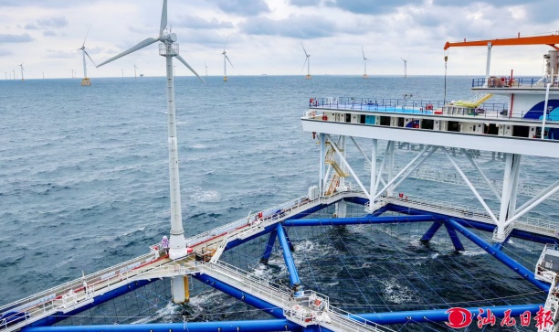 “伏羲一号”风渔融合网箱平台投运,实现海上发电、海下养鱼。