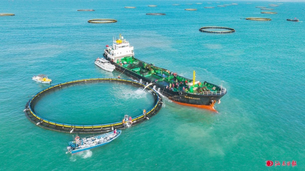汕尾日报讯 (记者 罗瑞琪)12月24日,由省港航集团建设、中交广航局交建公司承建的碣石湾现代化海洋牧场首批鱼苗正式投放,标志着这一现代化海洋牧场项目进入规模化养殖阶段。