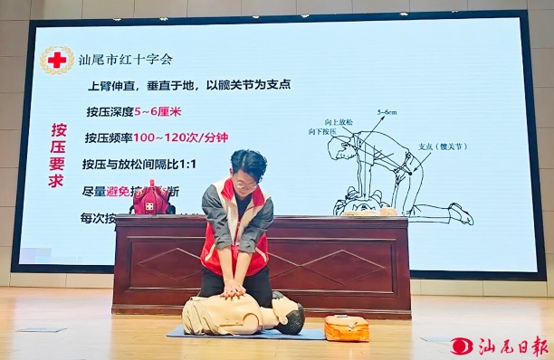 汕尾日报讯 (记者 陈希文 通讯员 黄少正 文/图)1月19日,市红十字会组织应急救护师资走进汕尾职业技术学院,开展应急救护公益大讲堂活动,为该校教职工传授实用急救知识与操作技能,助力提升校园应对突发事件的处置能力。