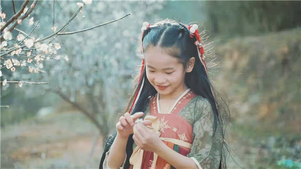 东坑共光梅园赏梅小姑娘笑容可掬。