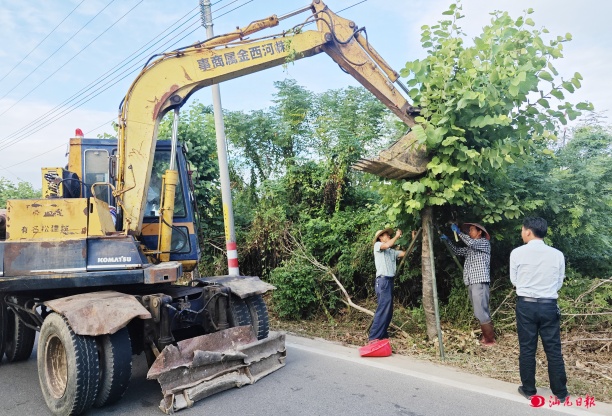 近日,陆丰潭西镇东山村组织志愿者开展绿化树木加固活动。此次加固活动针对东长崎公路该村路段两侧的树木。经过志愿者们细心加固处理,树木的线条更加整齐流畅,整体绿化以及抗风效果显著提升,巩固了该村的生态环境。图为活动场面。