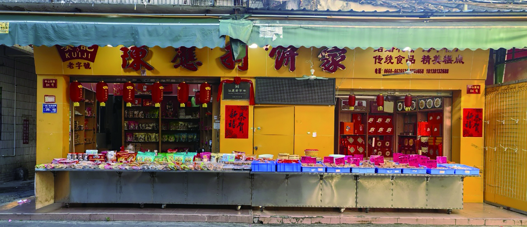 在海丰县海城镇金带街的骑楼深处,一间挂着红底金字招牌的老饼家终日飘香。木制玻璃柜里陈列着色泽金黄的婚嫁喜饼、油光莹润的猪油糖、层次分明的紫菜饼,往来顾客络绎不绝。这家经营了近四十年的陈应利饼家,承载着跨越三个世纪的味觉记忆。