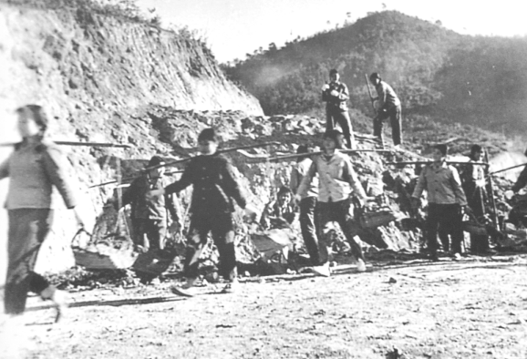 1975年初春,一连下了几十天的春雨。由于长时间下雨,上山公路(泥砂路)变得泥泞不堪,无法正常通行。平时,工地上的生活供给要靠大卡车到东海(陆丰县城)拉载上山,公路不通了,知青们眼看就要断了“粮草”。于是,知青连立刻紧急组织人力,到十几里外的河田墟(原陆丰县西北区重镇,现陆河县城)挑米挑菜上山救急。知青“挑夫”一早下山去,下午很晚才回到。