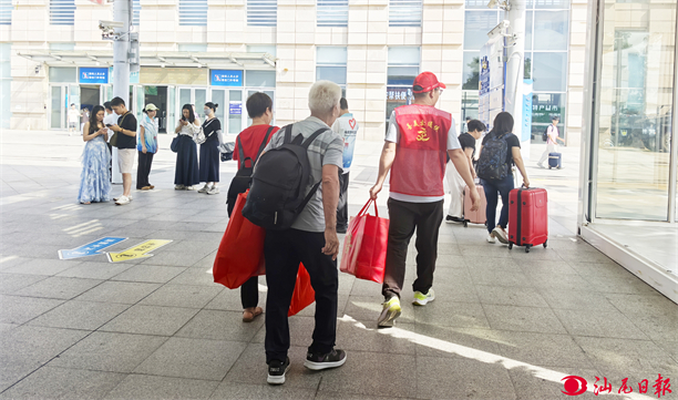 汕尾日报讯(记者 彭子珍 文/图)2025年国庆中秋双节相连,形成8天超长假期,市民出行需求集中释放,汕尾火车站迎来持续客流高峰。为保障旅客出行安全与顺畅,市交通运输部门联合多部门及各运输企业,综合施策,全力做好假期运输服务保障工作,织密市民出行“安全网”“便捷网”。