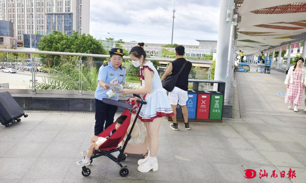 汕尾日报讯 (记者 彭子珍 文/图)近日,市交通运输局联合城区交管部门、汕尾火车站专班,在高铁站组织开展“打非治违”百日行动执法体验日活动。活动邀请出租车、网约车企业及司机代表参与,通过“派发+整治+互动”模式,实现执法公开与社会共治。
