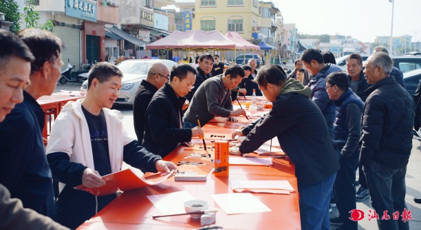 汕尾日报讯 (记者 刘佳伦 文/图)近日,红海湾书画协会联合遮浪合港水仙宫文化协会在合港水仙宫广场举办送春联活动。活动以“行船载福,跃马迎春——丙午岁送福挥春”为主题,旨在弘扬中华优秀传统文化,丰富乡村群众精神文化生活,营造喜庆祥和的新春氛围。