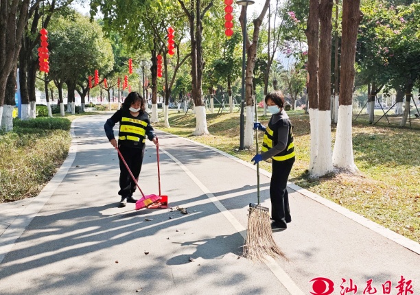 汕尾日报讯 (记者 彭子珍文/图) 大年初二,市区奎山公园内暖意融融,不少市民在此休闲游玩。公园工作人员依然忙碌在各自岗位,清扫垃圾、修剪绿植、擦拭设施,以辛勤付出守护着城市的“颜值”,为市民营造干净整洁、安全有序的游园环境。
